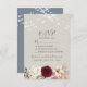 Elegant, boho, rustic floral wedding RSVP card with beautiful watercolor burgundy flowers, string lights and modern calligraphy script.