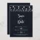 This rustic string lights wedding save the date is perfect for a modern wedding. The design features beautiful hand-painted string lights.