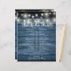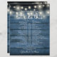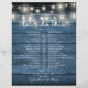 This rustic string lights wedding schedule-timeline can be personalised with your wedding details set chic white lettering on a blue wood panels background. Designed by Thisisnotme©