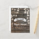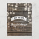 et the tone for your rustic or country-themed wedding with this charming "Save The Date" postcard featuring a warm wooden background and glowing string lights. Perfect for barn weddings, fall celebrations, or outdoor country events, this customisable postcard adds a personal touch with elegant script fonts and natural textures. Ideal for couples seeking a cosy, romantic vibe that guests will love. Easily edit with your names, wedding date, and location.
