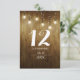 Rustic String Of Lights Country Table Number Card. A beautiful country barn wood design with sparkling lights. Simply add your custom details to the front and back of the card via the easy 'Personalise This Template' option. There are a choice of sizes, shapes and paper types to suit the design.