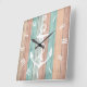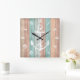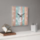 Rustic Summer Beach Wood Nautical Stripes & Anchor Square Wall Clock
