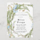 Design features a printed coloured floral element in shades of green and dusty blue watercolor florals wreath with baby blue butterflies on a canvas background. Calligraphy or type writing with the design artwork. Mix and match collection piece. Great for your wedding celebrations!