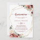 This rustic summer floral calligraphy Quinceañera invitation is perfect for a modern 15th birthday party. The design features burgundy, pink and blush watercolor flowers with green leaves in a brownish stained background.