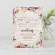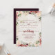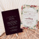 This rustic summer floral front and back wedding invitation is perfect for a simple wedding. The design features burgundy, pink and blush watercolor flowers with green leaves in a brownish stained background.