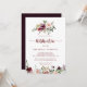 This rustic summer floral kitchen tea bridal shower invitation is perfect for a simple wedding shower. The design features burgundy, pink and blush watercolor flowers with green leaves in a brownish stained background.