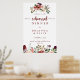 This rustic summer floral rehearsal dinner welcome sign is perfect for a simple wedding rehearsal. The design features burgundy, pink and blush watercolor flowers with green leaves in a brownish stained background.