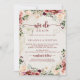 This rustic summer floral we do again vow renewal invitation is perfect for a modern event. The design features burgundy, pink and blush watercolor flowers with green leaves in a brownish stained background.