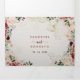 This rustic summer floral wedding of trifold invitation is perfect for a modern wedding. The design features burgundy, pink and blush watercolor flowers with green leaves in a brownish stained background.