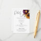 Add a touch of rustic elegance to your wedding stationery with this floral wedding details card, perfect for fall and late summer celebrations. Featuring a watercolor bouquet of burgundy, sunflower yellow, cream, and purple blooms with lush greenery, this design pairs beautifully with both casual and formal wedding themes. The crisp white background and mix of handwritten script and clean serif fonts create a timeless, versatile look. Created by Simply Farmhouse Press.