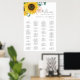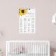 This rustic sunflower alphabetical seating chart poster is perfect for a country wedding. This sign can be used to organise your guests alphabetically or by table number by changing the names of the headings. The bohemian floral design features yellow sunflowers, blush pink flowers and hunter green eucalyptus greenery in watercolor with an elegant modern boho feel. This wedding poster includes enough room for up to about 120 guests. Make room for more (or less) guests by clicking the "customise" button and decrease or increase the size of the font. In addition to the placement of each guest, personalise this sign with the names of the bride and groom and the wedding date.
