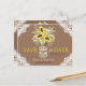 White lace over burlap-look background with sunflower bouquet in mason jar wrapped in burlap, lace and tied with twine bow rustic country western save the date postcard.