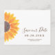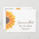 This modern and simple card features an original watercolor painting of a yellow sunflower on a white background with dark brown text.