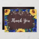 Rustic Sunflower Blue Floral Border Wood Wedding Thank You Card