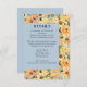 Elements: Lovely portrait of sunflowers in a rustic vase. Your names and details appear in a fun, slightly distressed font. Colours: Yellow, black, brown, orange, green, blue, violet. Themes: rustic, country, barn, romantic, garden, cottage, bright, sunny. Collection: Rustic Sunflower Bouquet Watercolor Wedding Collection. Product Type: Enclosure Card