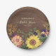 Celebrate the bride in style with this elegant rustic bridal shower paper plate. Featuring a faux woodgrain background with a vibrant floral arrangement of watercolor sunflowers, wildflowers, and greenery in deep jewel tones. Personalise with the bride’s name and shower date. Perfect for country, fall, or boho-themed bridal brunches, luncheons, and gatherings. Stylish and practical for desserts or appetizers.