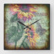 Rustic Sunflower Butterfly Bold Ephemera Square Wall Clock