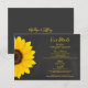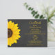 This cheerful sunflower chalkboard style wedding details enclosure card features a chalk-drawn sunflower with bright, colourful petals in shades of gold at the left border on the front of the invitation - the back of the card is a customisable solid colour, currently dark grey - by katz_d_zynes