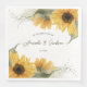 These rustic sunflower wedding paper napkins are an essential detail for any summer or fall wedding. Adorned with a charming sunflower design, they perfectly capture the spirit of a rustic-themed celebration. Each napkin can be personalised with the names of the bride and groom along with the wedding date, adding a bespoke touch to your special day. The warm, inviting colours complement a variety of rustic sunflower themed wedding stationery, ensuring a cohesive look throughout your event. These elegant and functional napkins not only serve a practical purpose but also enhance the overall aesthetic of your wedding tablespace, making them a delightful addition to your matrimonial festivities.