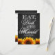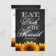 Rustic Sunflower Country Wedding RSVP Cards -match the invitations and more found below on this page. Compliment your sunflower wedding theme with these RSVP cards that feature a black chalkboard as a background with "Eat, Drink & Be Married" in fun & elegant script with vibrant sunflowers at the bottom of the front and back of each card.