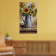 Elevate your space with this captivating rustic sunflower decor wall art poster. This expressionist painting features vibrant sunflowers in a charming, galvanized pitcher on a worn wooden table, rendered with visible brushstrokes and warm earth tones. It's the perfect piece to add a cozy, vintage farmhouse aesthetic and artistic flair to your living room, kitchen, or any cherished space.