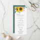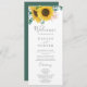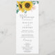 This rustic sunflower eucalyptus wedding program is perfect for a country wedding. The bohemian floral design features yellow sunflowers, blush pink flowers and hunter green eucalyptus greenery in watercolor with an elegant modern boho feel. Include the name of the bride and groom, the wedding date and location, thank you message, order of service, bridal party and an optional "in loving memory" memorial.