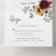 This fall rustic sunflower and burgundy roses country all in one wedding invitation with RSVP is perfect for a barn or ranch wedding. This invitation features watercolor yellow sunflowers with burgundy roses and baby's breath and sage eucalyptus greenery. This is a perfect colour scheme for a late summer or fall wedding Make this invitation your own by including your names and all of your wedding details. The RSVP has the option to add meal choice if needed.