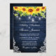 Rustic Sunflower Floral Blue Wood Jar Lights Lace Invitation
