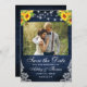 Rustic Sunflower Floral Blue Wood Lights Photo Save The Date