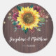 Rustic Sunflower Floral Lights Wood Wedding Classic Round Sticker