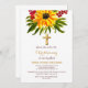 Rustic Sunflower Greenery Gold Cross Baptism Invitation