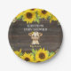 Rustic Sunflower Highland Cow Baby Shower Paper Plate