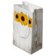Rustic Sunflower Lace & Burlap Gift Bag. Beautiful rustic burlap and lace over a whitewashed wood plank background. A yellow sunflower completes the design.