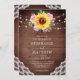 These rustic wedding invitations feature a watercolor sunflower and pink roses floral design with lace, string lights and a wood background. Personalise them with your own text. Matching wedding suite items are also available.