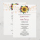 These wedding programs feature watercolor sunflowers, burgundy roses, foliage and string lights. The front of the card has the ceremony and the back of the card lists the bridal party. These wedding programs are part of a collection which includes a full range of matching wedding stationery that you can personalise for your wedding. Please visit the collection pages in our store to see the full range.