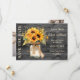 Announce your wedding with rustic charm using this sunflower mason jar Save the Date card. Featuring a faux dark woodgrain background, a watercolor sunflower bouquet in a twine-wrapped mason jar, and elegant script fonts, this design captures a cosy country vibe. Perfect for barn weddings, fall celebrations, or sunflower-themed events. Fully customisable with your names, date, and a note that a formal invitation will follow. A warm, memorable way to start your wedding journey.