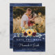 Rustic Sunflower Navy Blue String Lights Wedding Save The Date