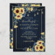 Rustic Sunflower Navy Blue Wood Floral Wedding Invitation