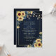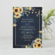 Rustic Sunflower Navy Blue Wood QR Code Wedding Invitation