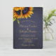 Elegant chic summer or fall wedding stylish invitation template on dark midnight navy blue chalkboard featuring a beautiful sunflowers bouquet and faux gold calligraphy script. ++++++++++++++++++ The invitation is suitable for elegant summer or autumn fall rustic country weddings.