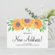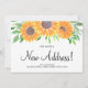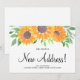 This rustic new address moving announcement card features watercolor sunflowers in shades of yellow and gold, with green leaves, and stylish typography.