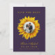 Elegant wedding save the date card featuring a yellow gold sunflower with your photo inside, the bride and groom's names, date, and website over a purple background. ++++++++++ Suitable for modern rustic country summer or autumn fall outdoor backyard, garden, barn or farmhouse weddings. ++++++ Please note that the colours are changeable. If you need to customise it in a specific colour of text and/or background, please contact the designer through the MESSAGE button below.
