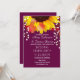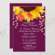 Gorgeous plum wedding invitation features sunflower in full bloom, adorned with dainty baby's breath and autumn leafs in lush shade of red, orange and brown. Click to customise further to change font style, size or colour.