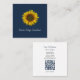 Rustic Sunflower QR code Boho Navy Blue Square Business Card