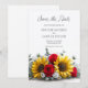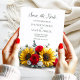 Let your friends and family know about your special day in style with this rustic sunflower and red rose floral wedding save-the-date card. The easy-to-use text templates make adding all the necessary information a quick and simple task. With a variety of paper types and corner styles to choose from, you can create truly unique cards that reflect your individuality, along with the option to download if you prefer a digital format.