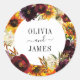 Rustic Sunflower Rose Burgundy Fall Wreath Wedding Classic Round Sticker