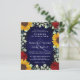 Rustic Sunflower Rose Navy Wood Wedding Invitation