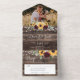 Set the tone for your celebration with this stunning all-in-one rustic wedding invitation featuring sunflowers and burgundy roses, designed for couples who love a warm, romantic countryside aesthetic. This beautifully coordinated suite combines natural wood textures, soft string light accents, and rich floral details to create an invitation that feels both inviting and unforgettable.