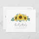 This rustic sunflower song request RSVP postcard is perfect for a country wedding. The bohemian floral design features yellow sunflowers, blush pink flowers and hunter green eucalyptus greenery in watercolor with an elegant modern boho feel. Build your wedding guest list and your dance floor song list all at once! This wedding response postcard conveniently asks guests if they will be able to attend your wedding, and also what song will get them to dance.