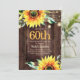 Rustic wood, yellow sunflowers with greenery, and sparkling string lights and lanterns 60th country-style birthday party invitation for women. Contact us for help with customisation or to request matching products.